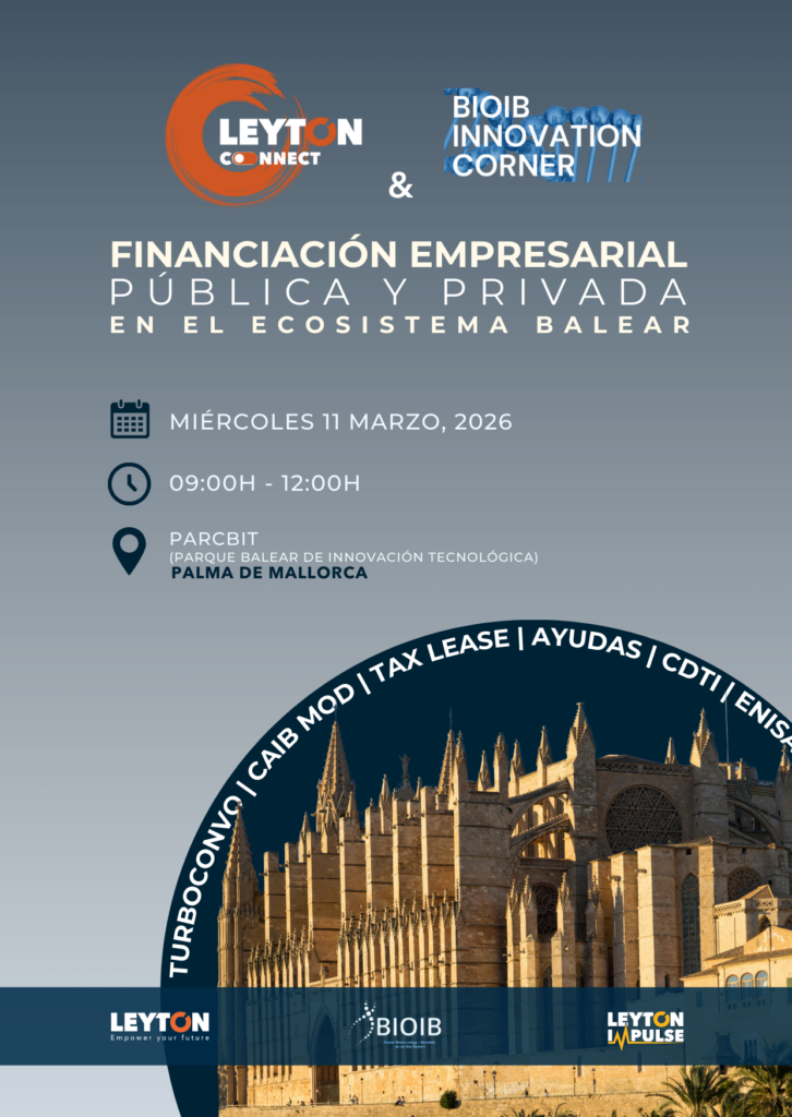 Desde BIOIB os recordamos nuestro próximo BIOIB Innovation Corner, una sesión práctica organizada junto a Leyton Connect, dirigida a empresas, investigadores y entidades interesadas en financiación para la innovación.